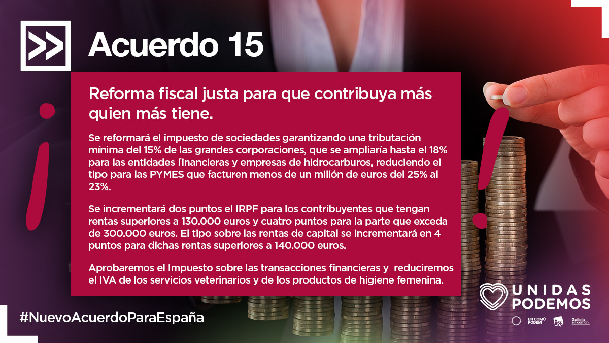 Este documento y los puntos que en él se recogen son Acuerdos de Gobierno para toda la legislatura. Los Presupuestos Generales del Estado que se desarrollarán a lo largo de la misma se elaborarán tomando como base este documento y los consensos adquiridos en los últimos tiempos, adaptándolos al nuevo contexto macroeconómico.