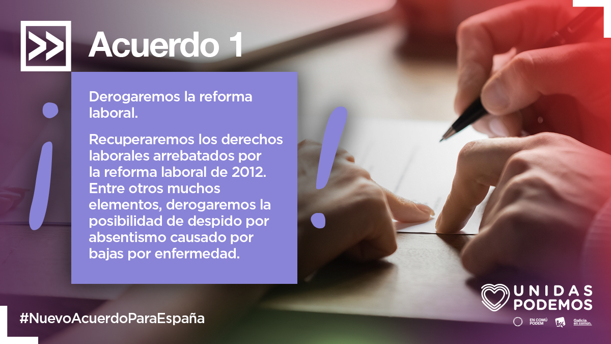 Este documento desarrolla el contenido programático del preacuerdo alcanzado entre el PSOE y Unidas Podemos para conformar un Gobierno progresista de coalición que sitúe a España como referente de la protección de los derechos sociales en Europa, tal y como los ciudadanos y ciudadanas han decidido en las urnas.