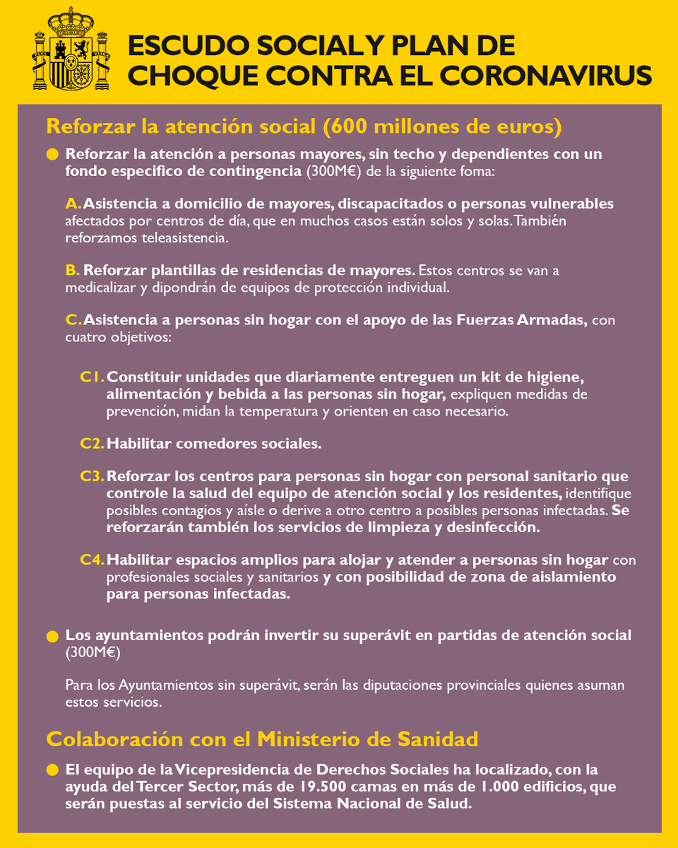 Plan de choque social contra el Coronavirus de 600 millones de euros para reforzar los servicios de atención social – Gobierno de España