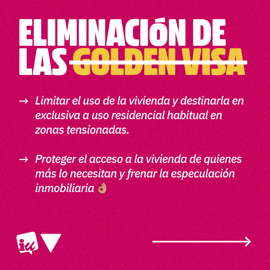 3. Eliminación inmediata de las Golden Visa y limitación del uso de la vivienda para actividades que sean de residencia habitual en zonas tensionadas.