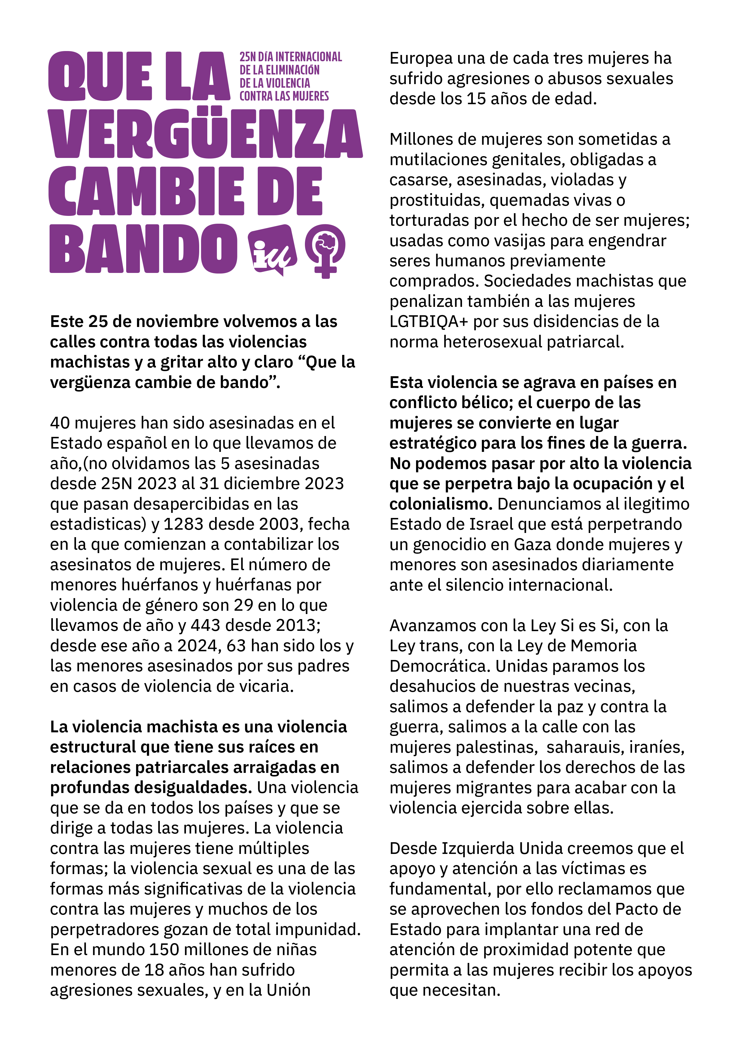 Este 25 de noviembre volvemos a las calles contra todas las violencias machistas y a gritar alto y claro “Que la vergüenza cambie de bando”.