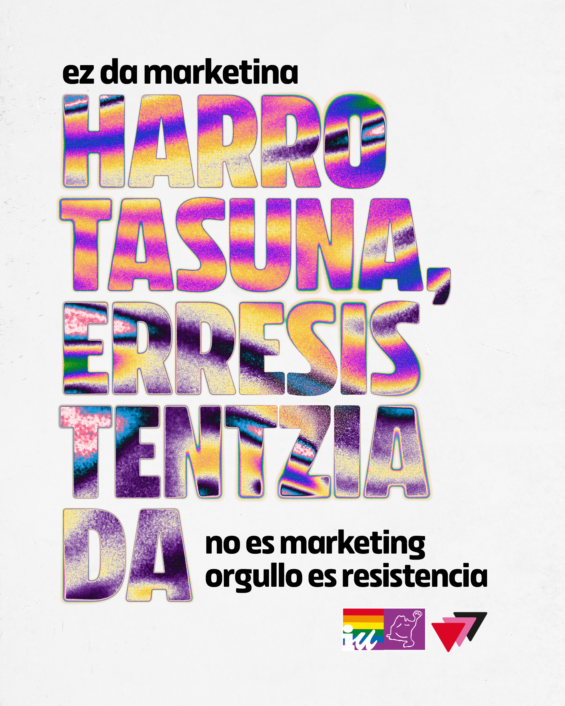 2025eko Harrotasun honek ez du izan behar festa huts bat, ez marken eta enpresen desfile bat, ez aurpegia garbitzeko kanpaina bat. Harrotasuna borroka da, memoria da, sua da, erresistentzia da. Duintasunez bizitzeko jaio ginelako, eta oihuka jarraituko dugu harik eta LGTBIQA+ bizitza bakoitza errespetatzen den arte auzo bakoitzean, eskola bakoitzean, lantoki bakoitzean, herrialde bakoitzean.